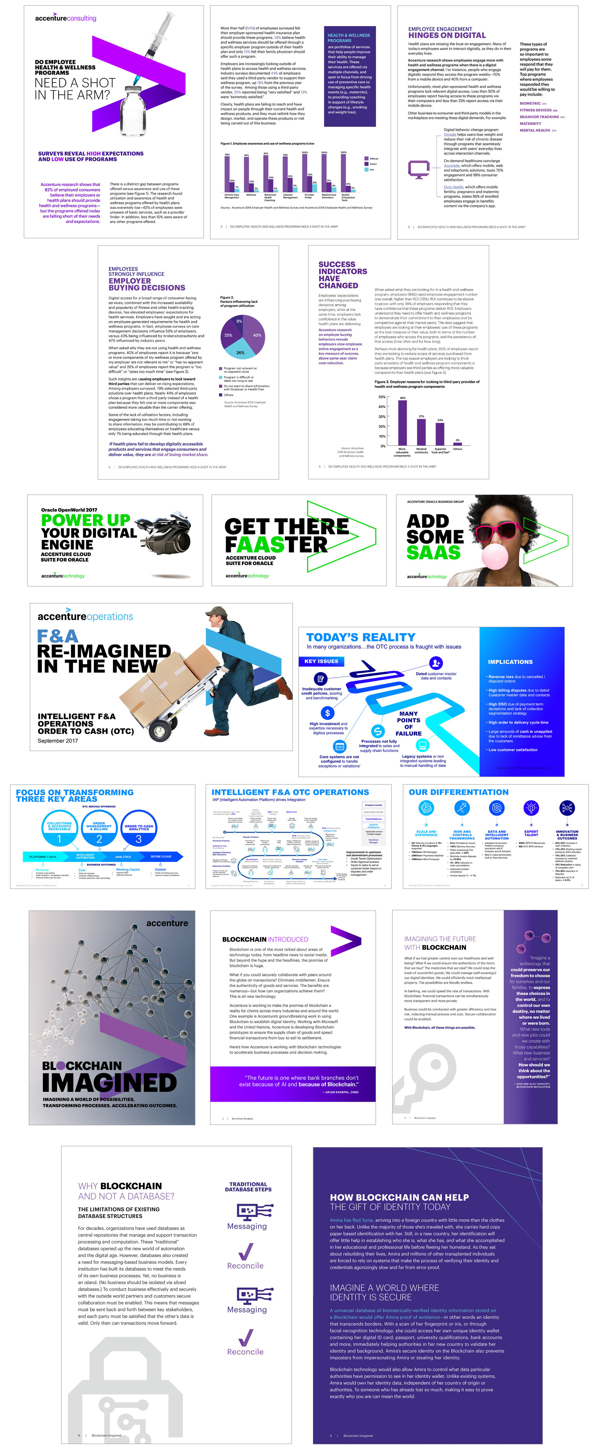 While contracting with a creative agency, I produced a broad spectrum of print and digital deliverables for Accenture—spanning brochures, social ads, presentations, and other branded materials.
