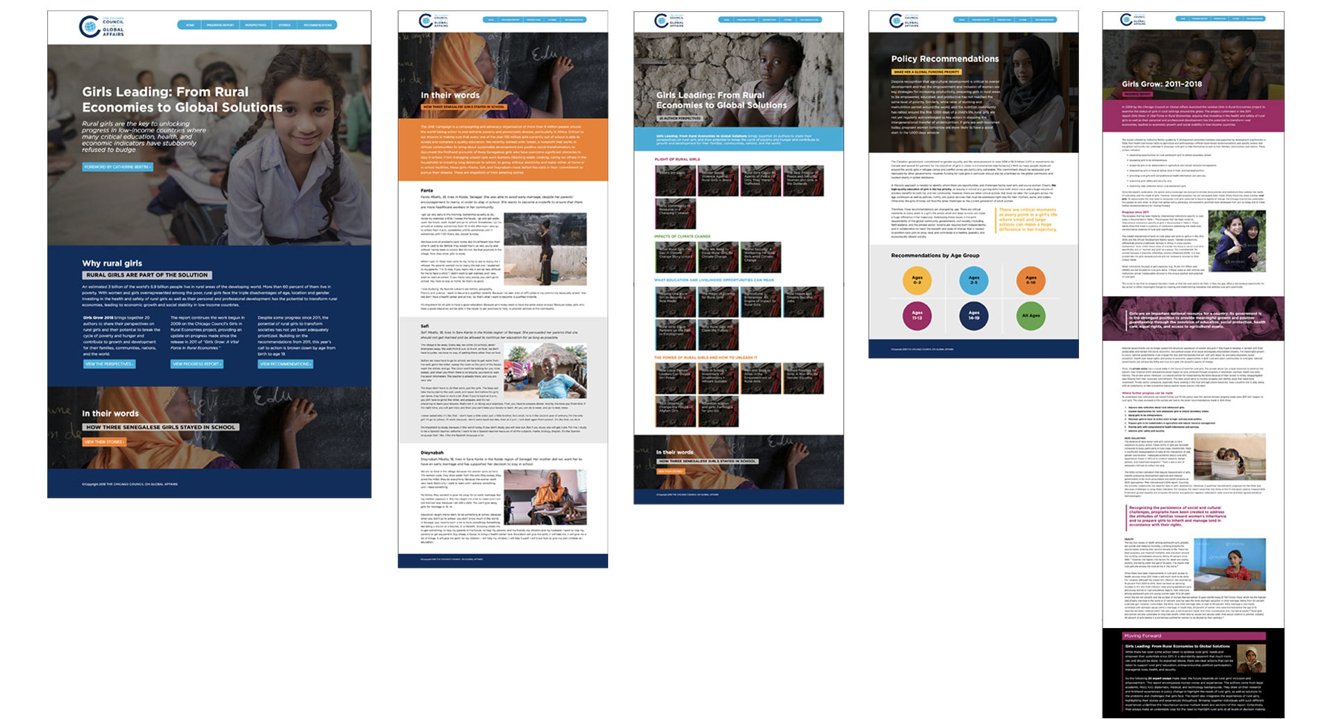 Girls Leading: From Rural Economies to Global Solutions is a global report by The Chicago Council on Global Affairs featuring research and personal perspectives from 20 authors worldwide. The project was delivered as a fully online digital experience alongside a downloadable PDF, making complex, long-form content accessible to a broad, global audience.
